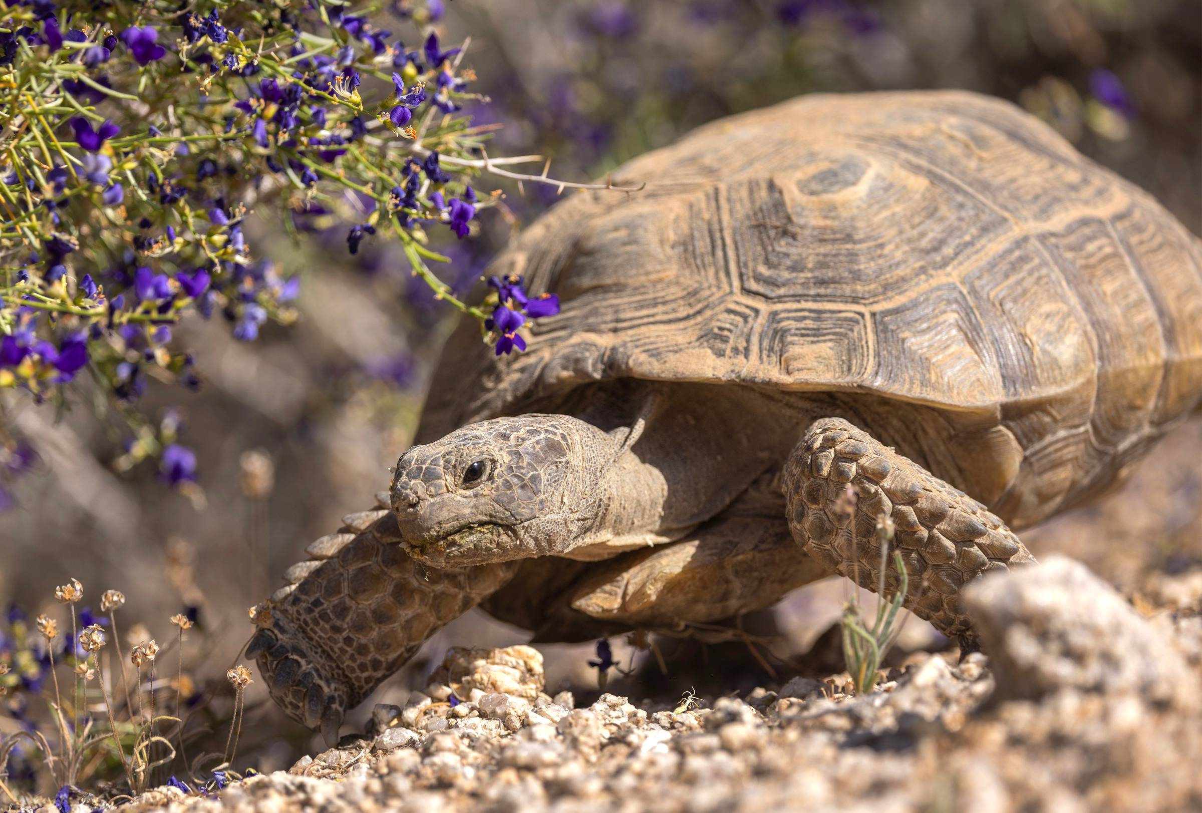 Tortoises living in a 3.5 million-acre area of California’s Mojave Desert will soon receive greater protections thanks to a new partnership that includes state, local, and federal government agencies, conservation groups, military organizations, and more. The land was named a sentinel landscape, a designation aimed at promoting sustainability around military installations and ranges. In addition to bringing various interested parties together, the title gives the area priority when it comes to certain grant funding, the Los Angeles Times reports. “Coming together as a partnership, we thought, would make the coalition and the cooperation more effective than everybody chipping away and working independently in their own backyard,” said Ken MacDonald, with the Desert Tortoise Council conservation group, adding: “[It’s] to be more effective in conserving and recovering the desert tortoises, and that’s pretty much it. Just team up and take care of these critters.” The tortoises in the Mojave are vulnerable to car collisions, human development, drought, and predators like coyotes and ravens. Phil Murray, an encroachment manager for the Marine Corps Air Ground Combat Center in Twentynine Palms, said the new coalition will address these threats, including by building fencing and wildlife crossings and rehabilitating the reptiles’ habitat.