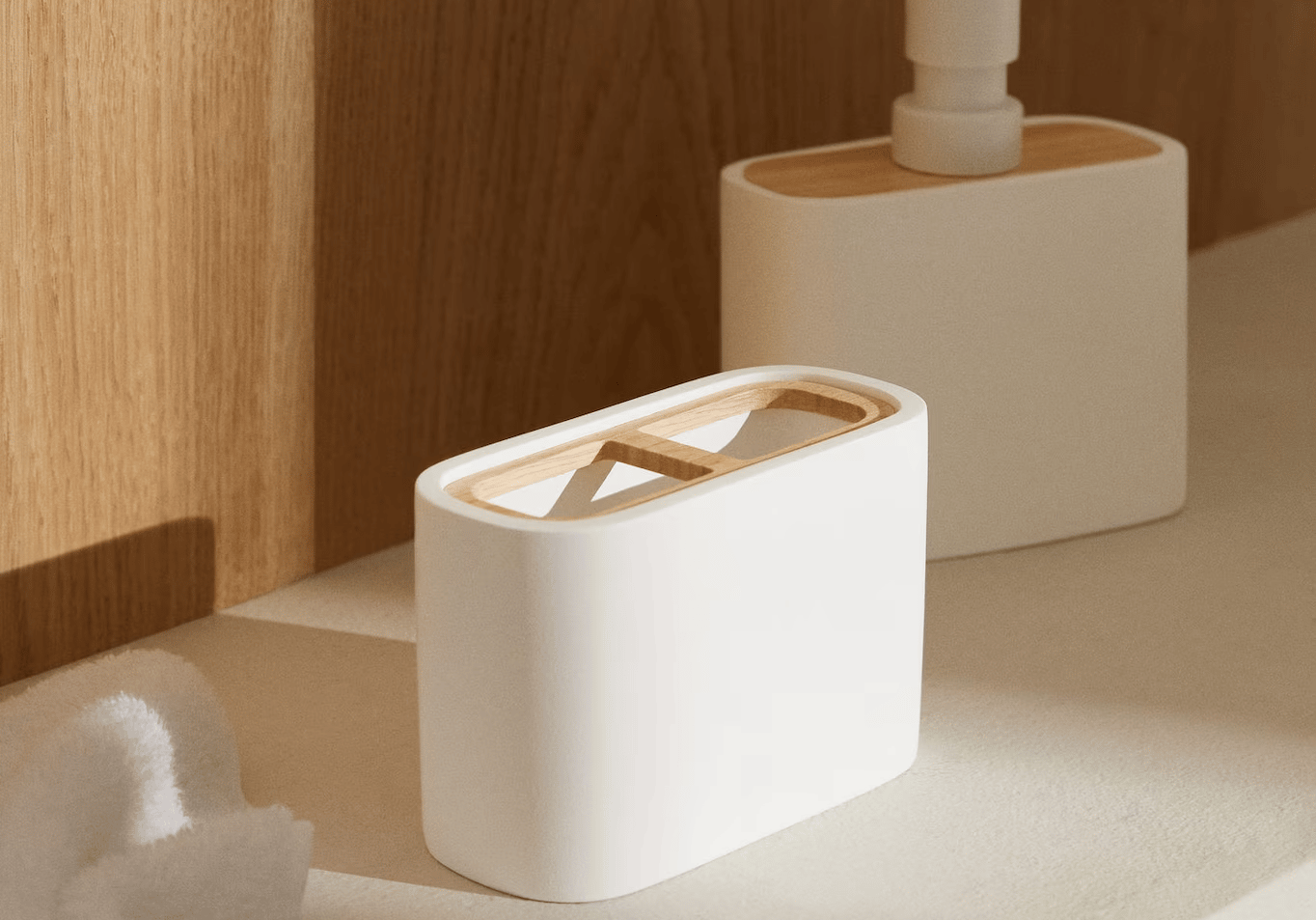 Mango Resin and Wood Toothpaste Holder Sometimes it’s the smallest changes that can make the biggest difference in a home or room, and this resin and wood toothbrush holder from Mango Home does just that. The two-tone design from the brand’s spa collection will give your bathroom countertop a refined (but affordable) upgrade. And you can add the matching refillable soap dispenser, too.