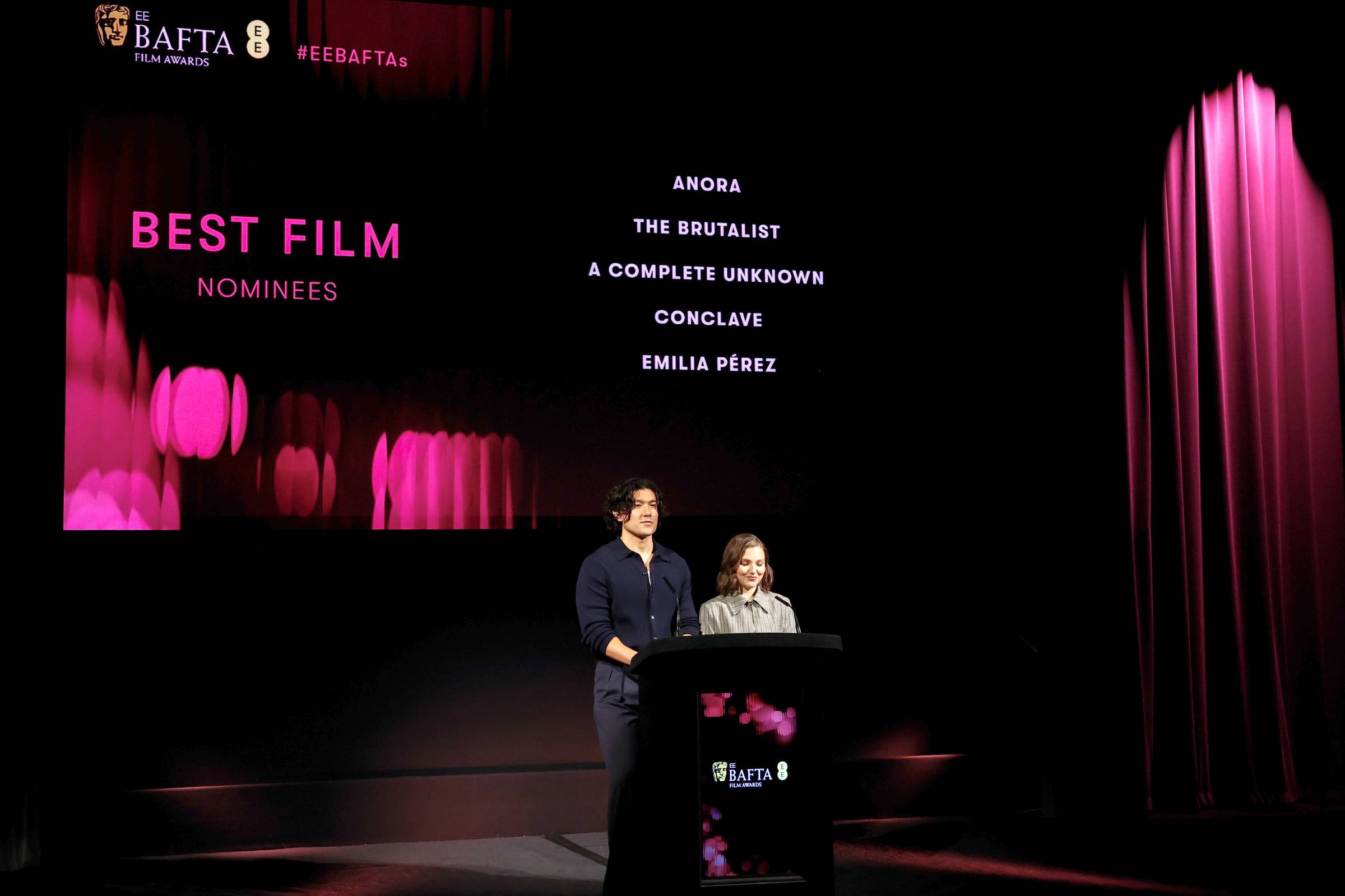 In case you missed it, the British Academy Film Award nominees were announced Wednesday in an event hosted by English actors Will Sharpe and Mia McKenna-Bruce. Papal thriller Conclave led the nominations with 12 nods, followed by the musical Emilia Pérez, with 11. See the full list.